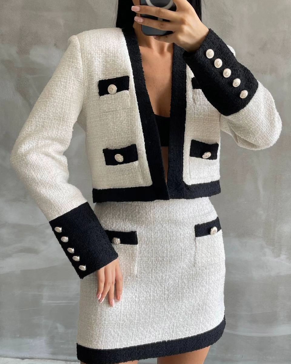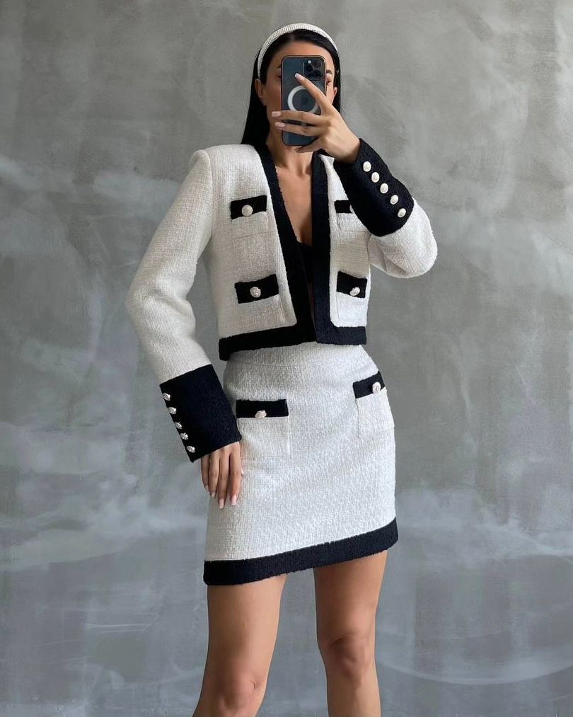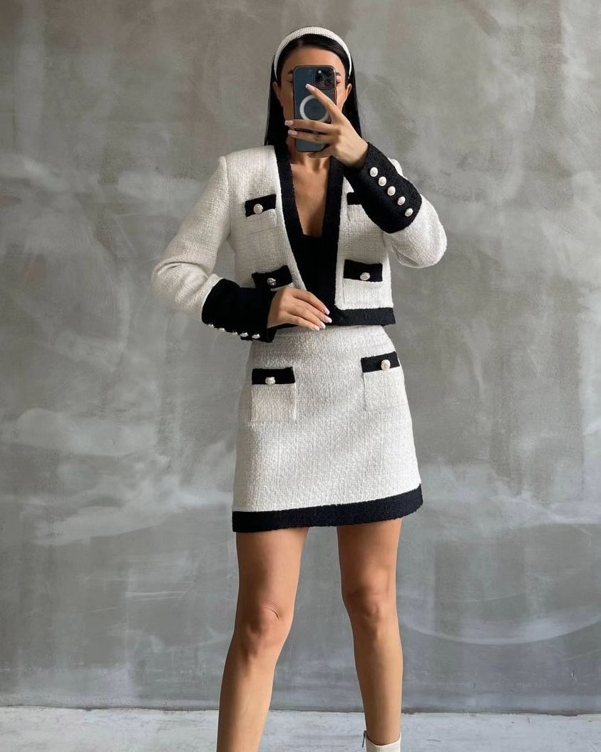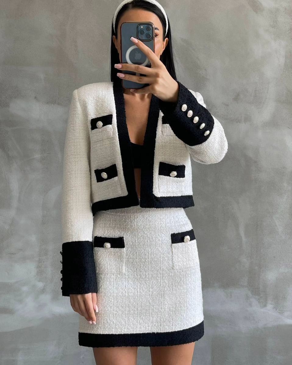 الرئيسيةنساءSUIT (ENSEMBLE)ENSEMBLE TOP+JUPE Tweed Skirt Suit